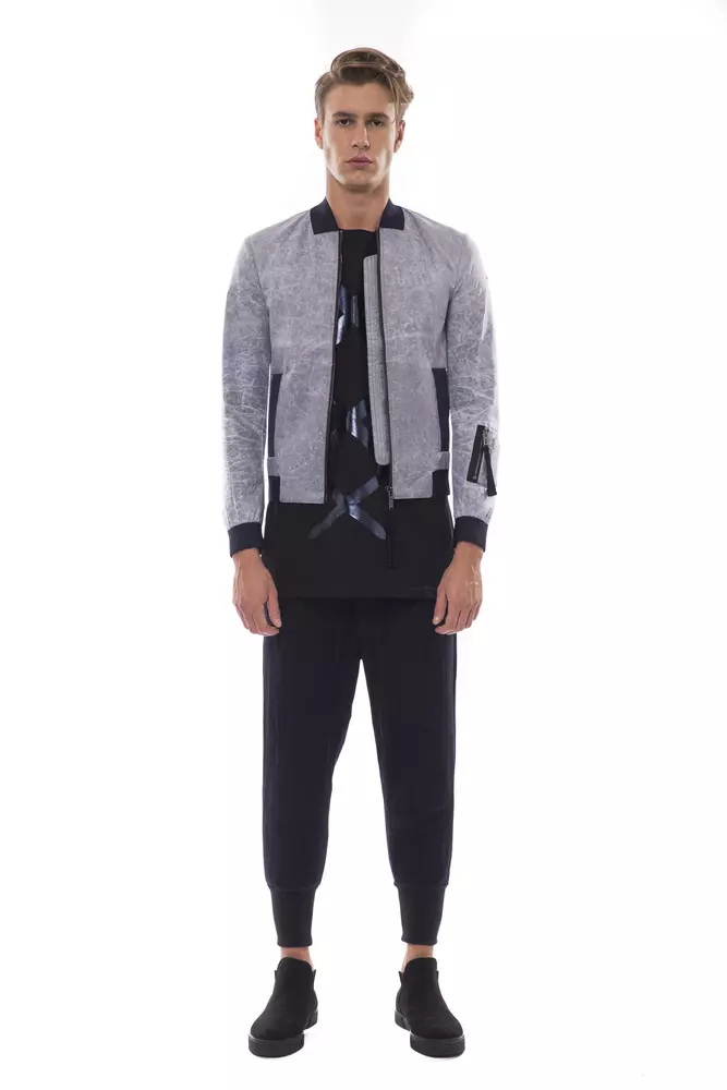 Gray Polyester Men Bomber Jacket