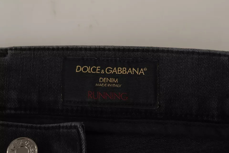 Gray Running Denim Stretch Logo Skinny Jeans