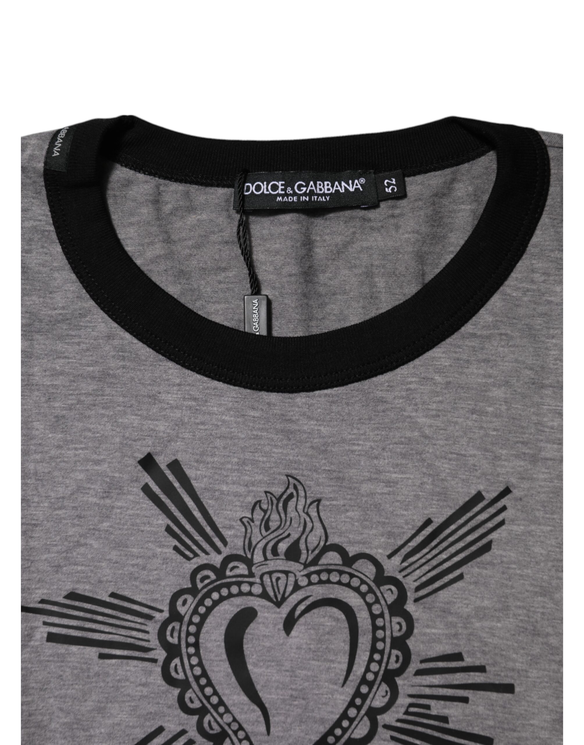 Gray Sacred Heart Cotton Crew Neck T-shirt