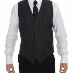 Gray Striped Wool Logo Vest Gilet Weste