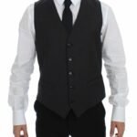 Gray Striped Wool Single Breasted Vest