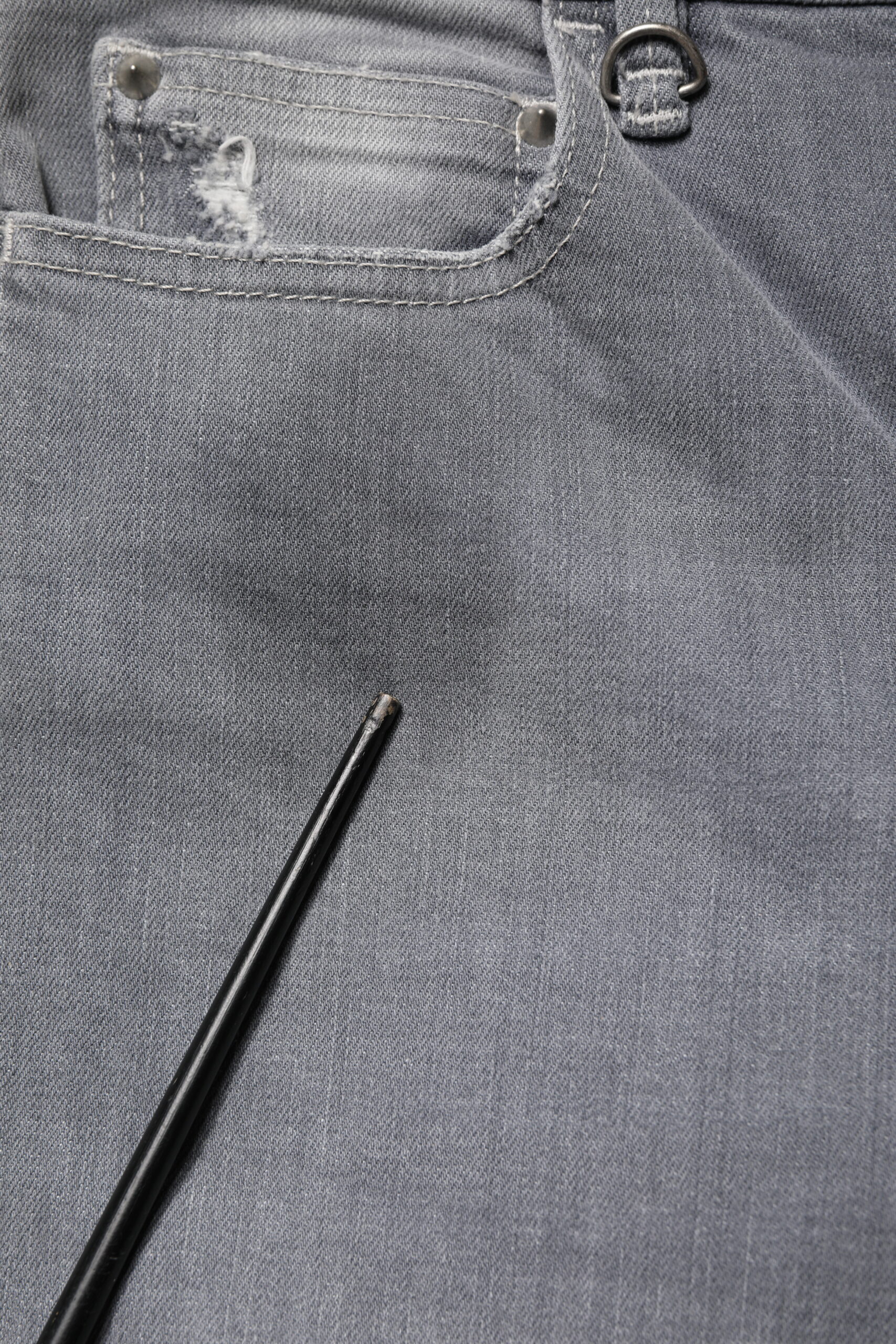 Gray Tattered Mid Waist Men Straight Denim Trouser Jeans