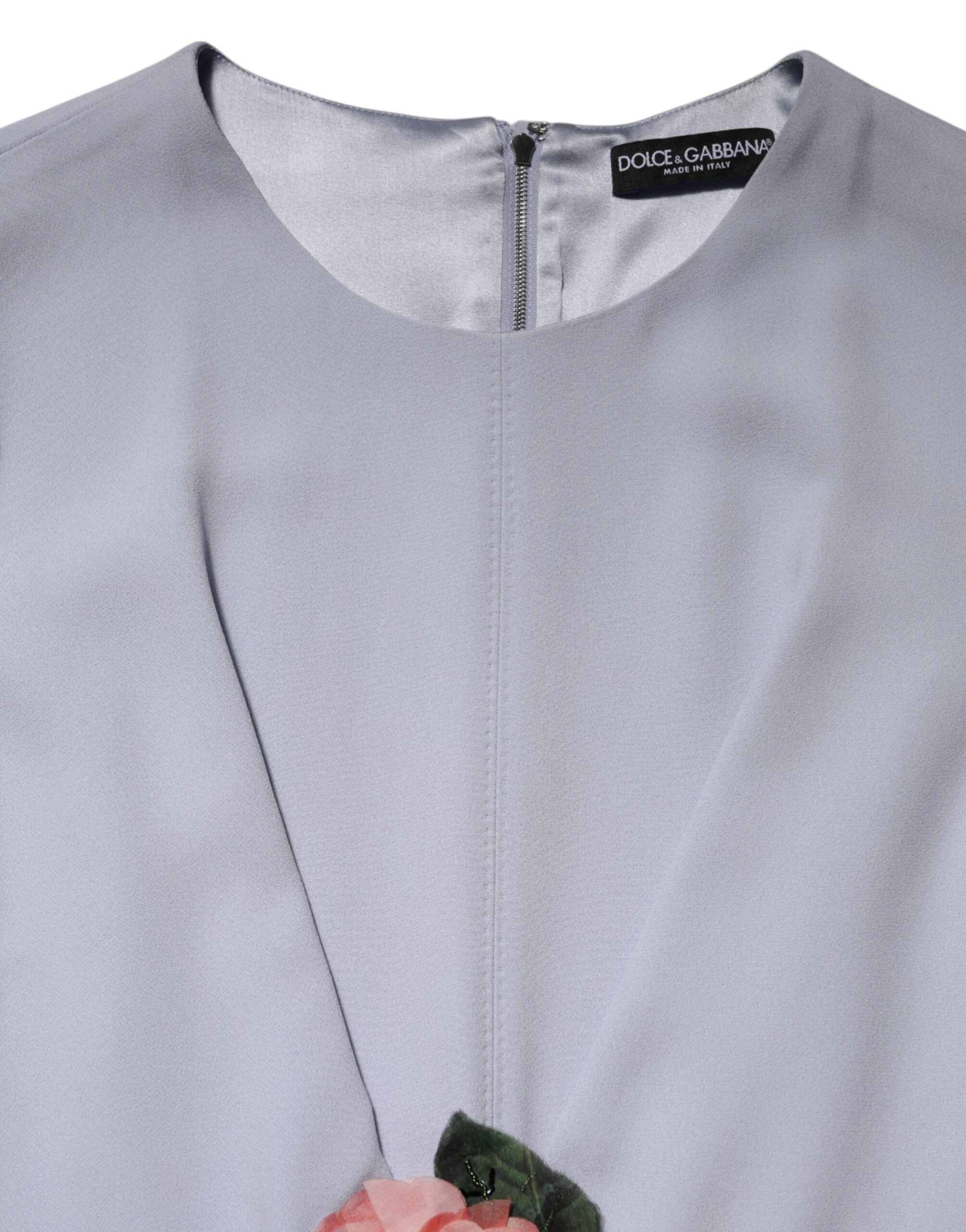 Gray Viscose ShortSleeve Sheath Midi Dress