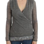 Gray Wool Blend Stretch Long Sleeve Sweater