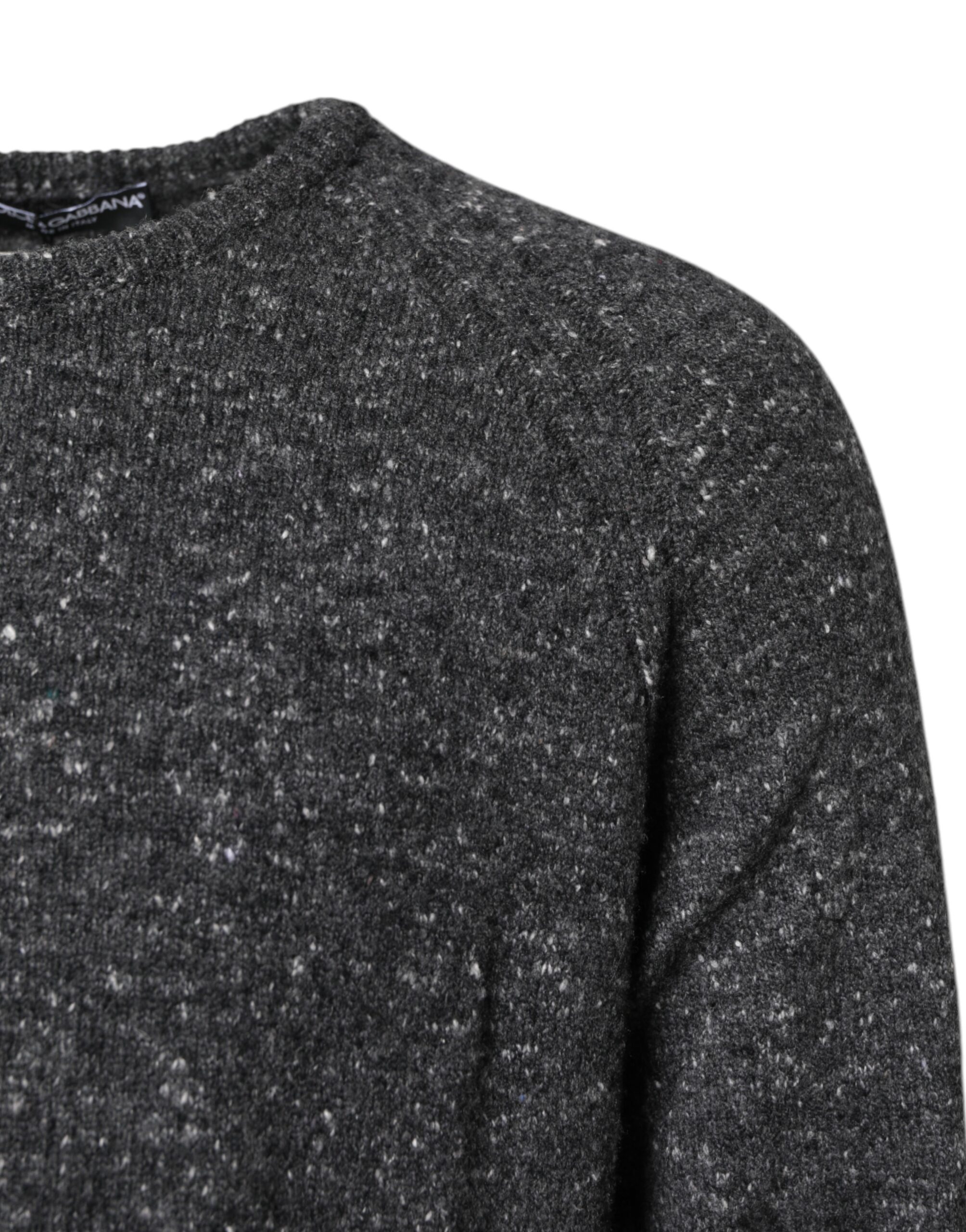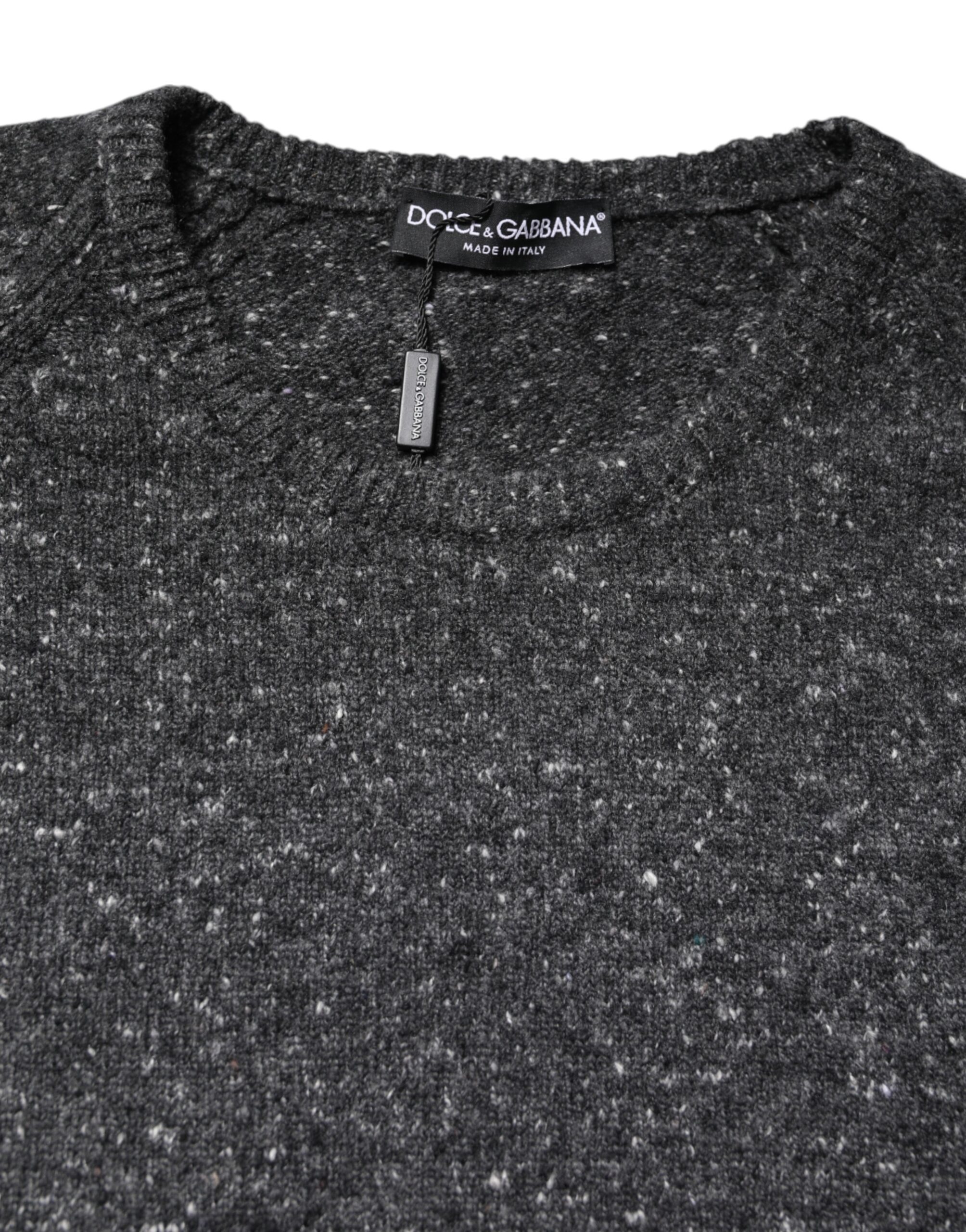 Gray Wool Knitted Round Neck Pullover Sweater