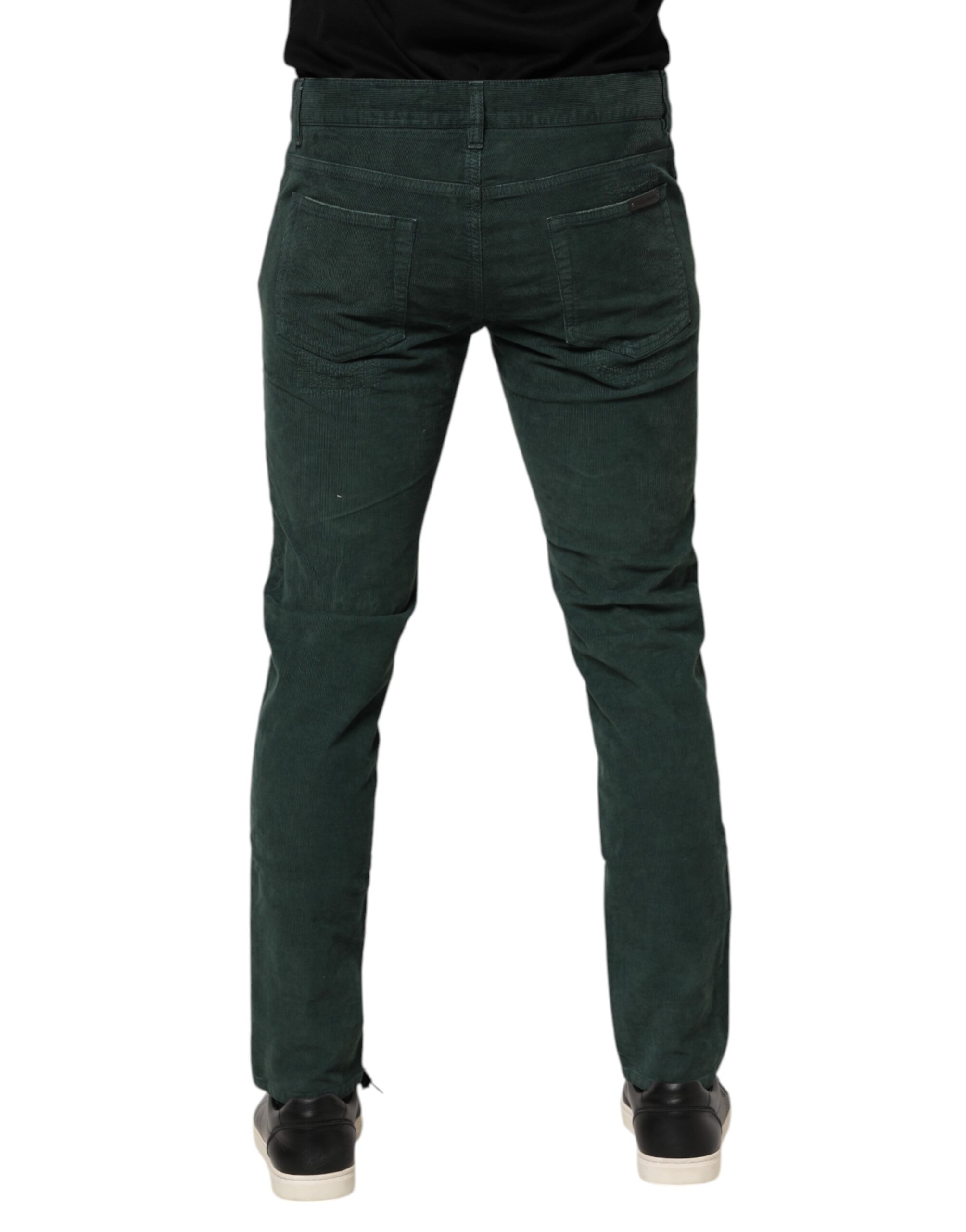 Green Cotton Corduroy Skinny Pants