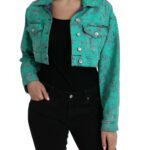 Green Cotton Tie Dye Cropped Cropped Denim Jacket