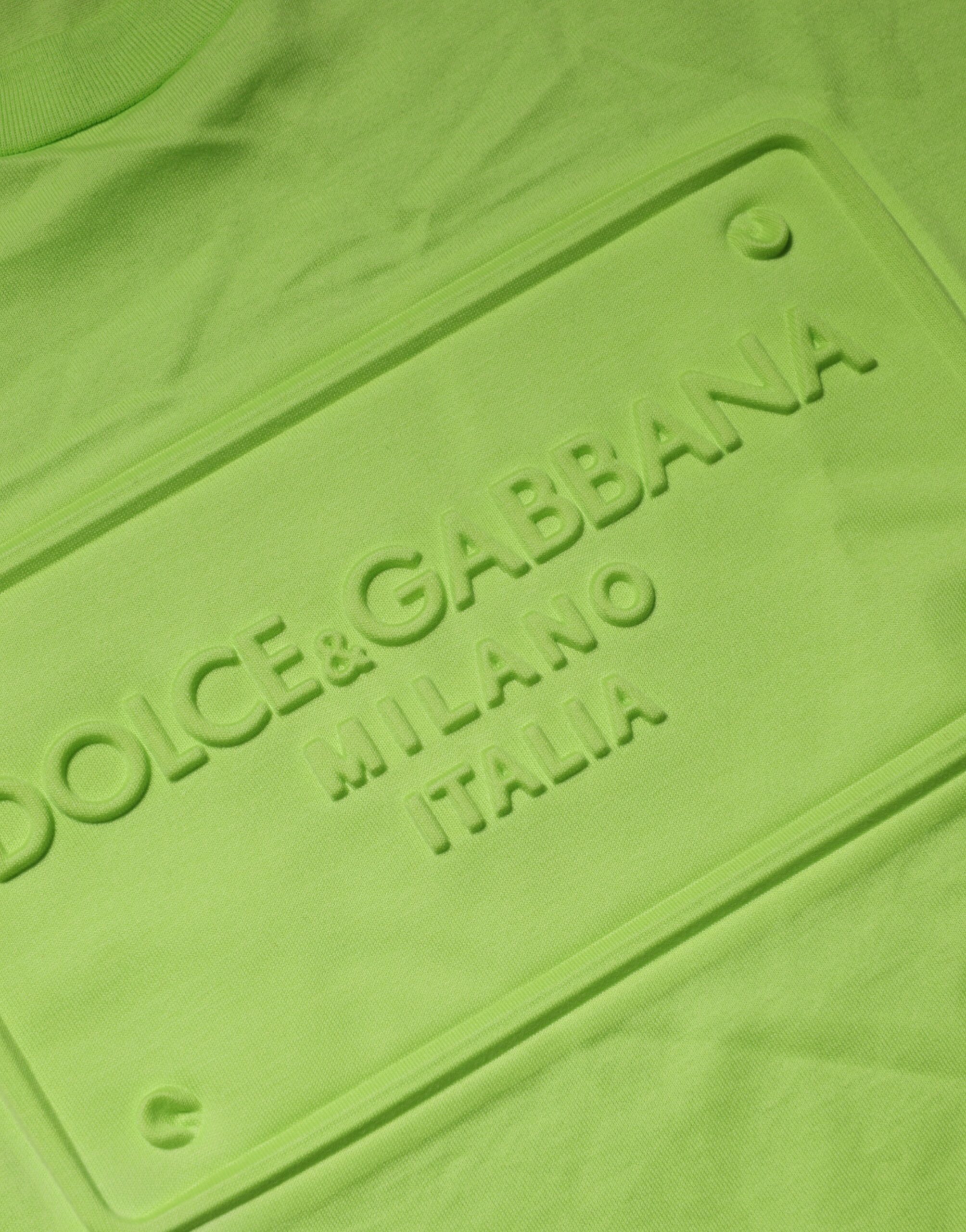 Green Embossed Logo Cotton Crew Neck T-shirt