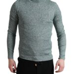 Green Polyester Turtleneck Pullover Sweater