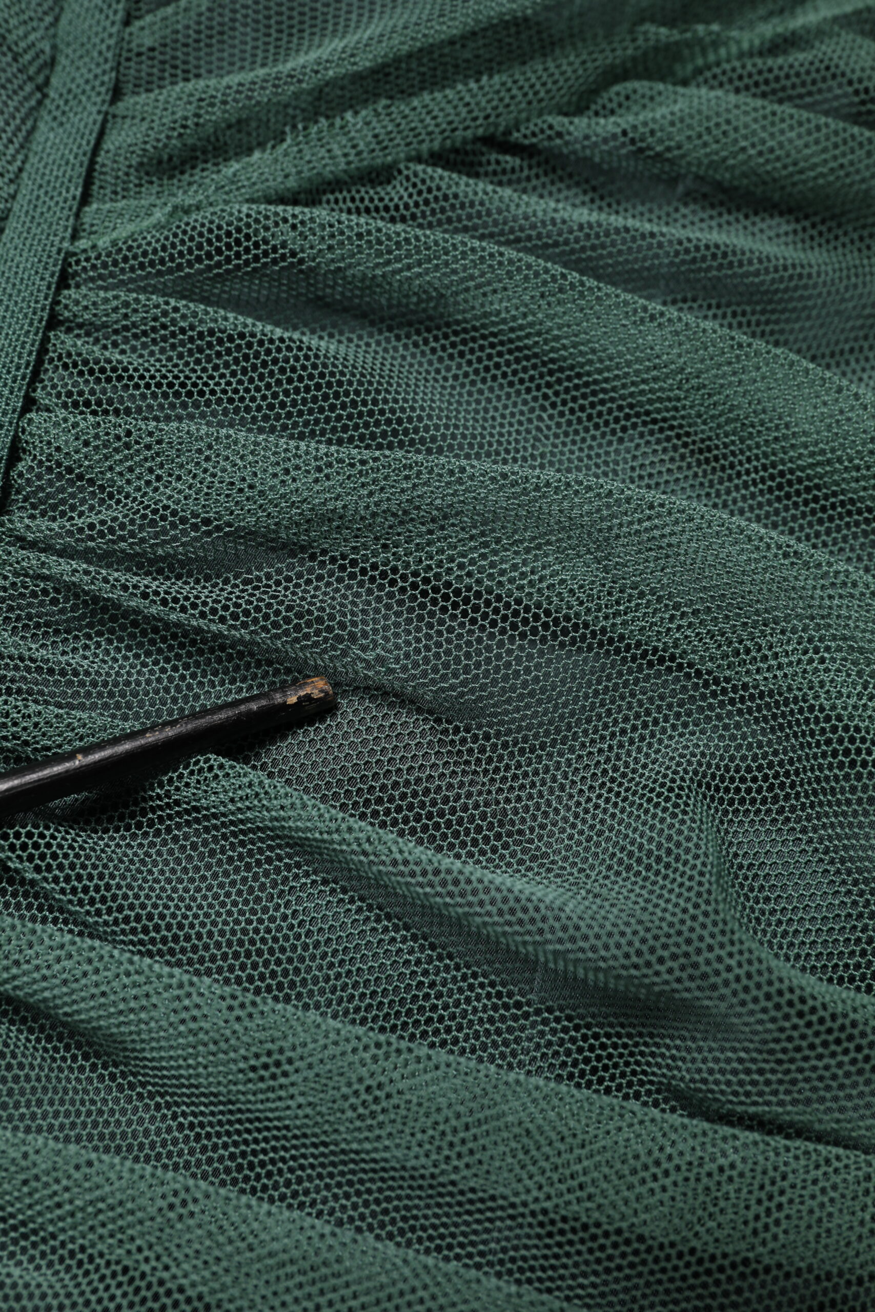 Green Ruched Mesh Sheer Sleeves Midi Dress