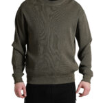 Green Viscose Crew Neck Men Pullover Sweater