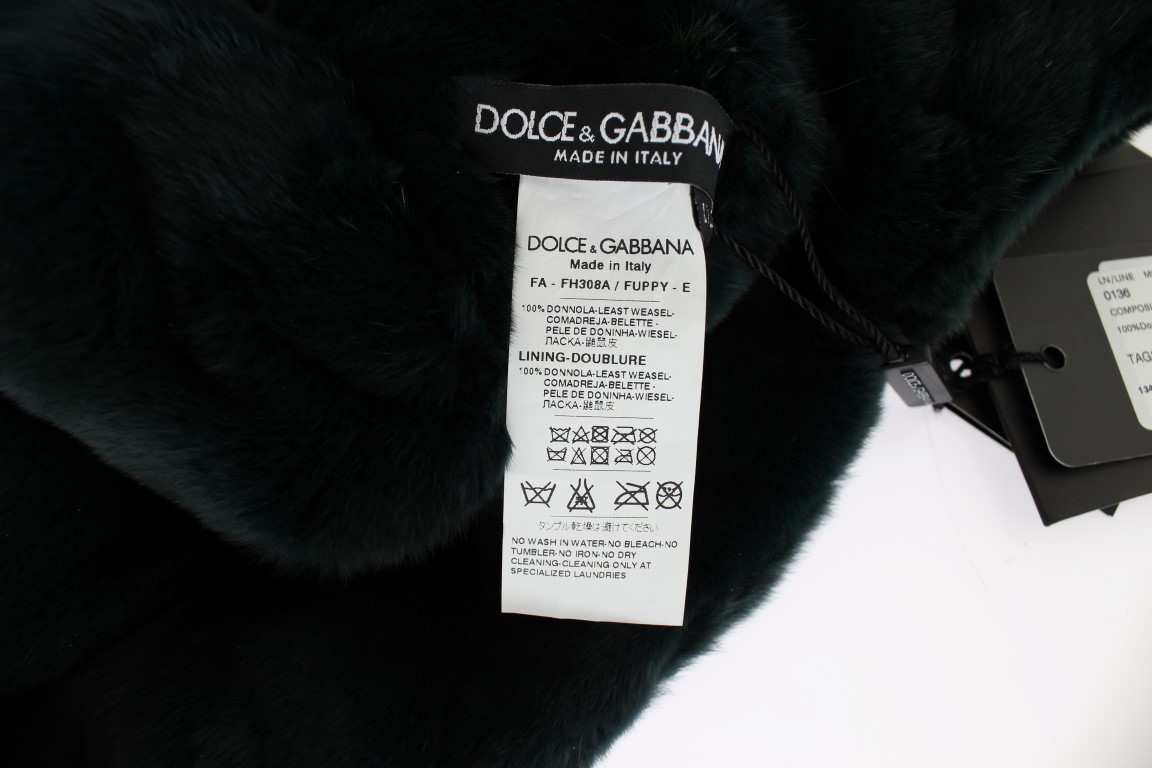 Green Weasel Fur Crochet Hood Scarf Hat