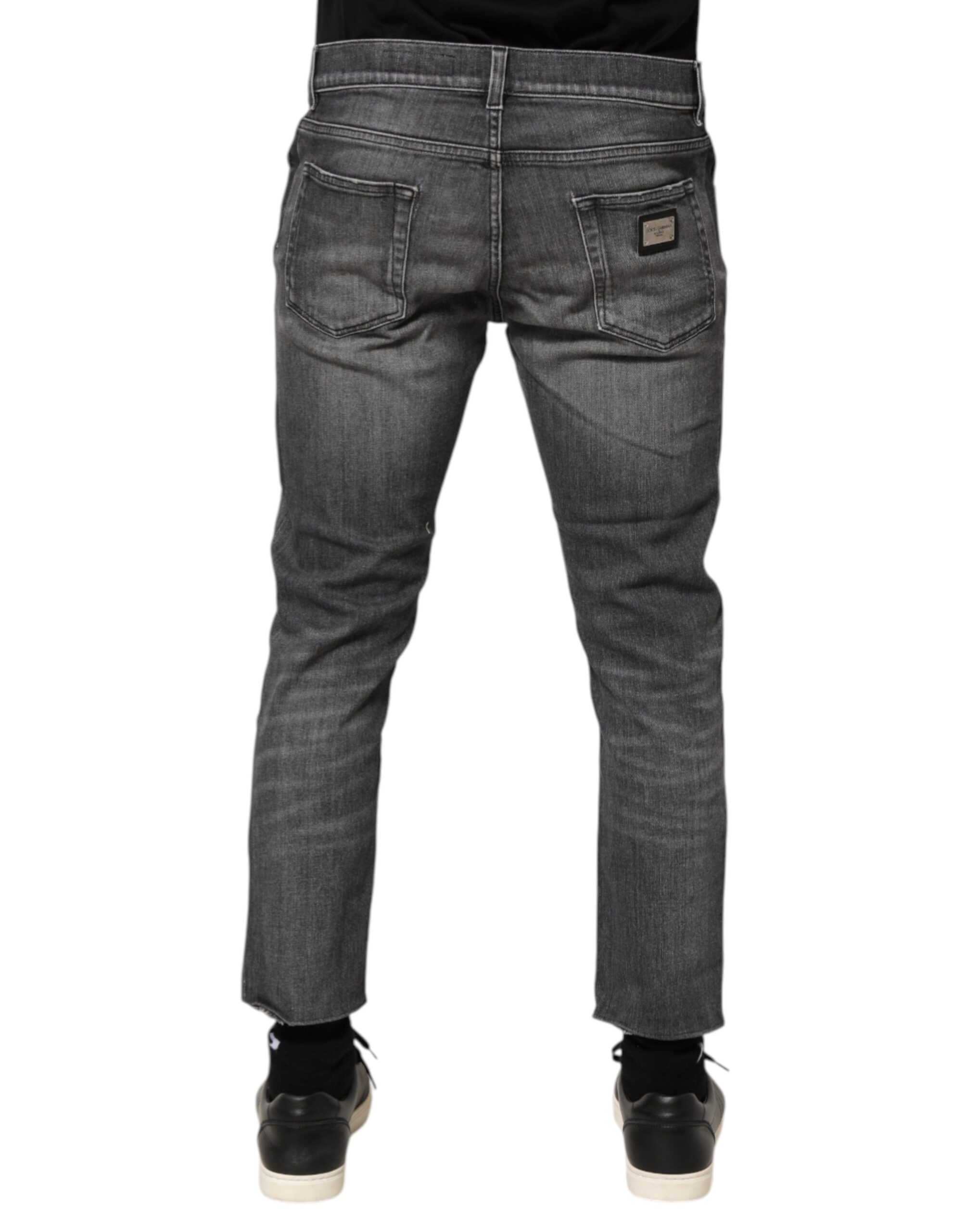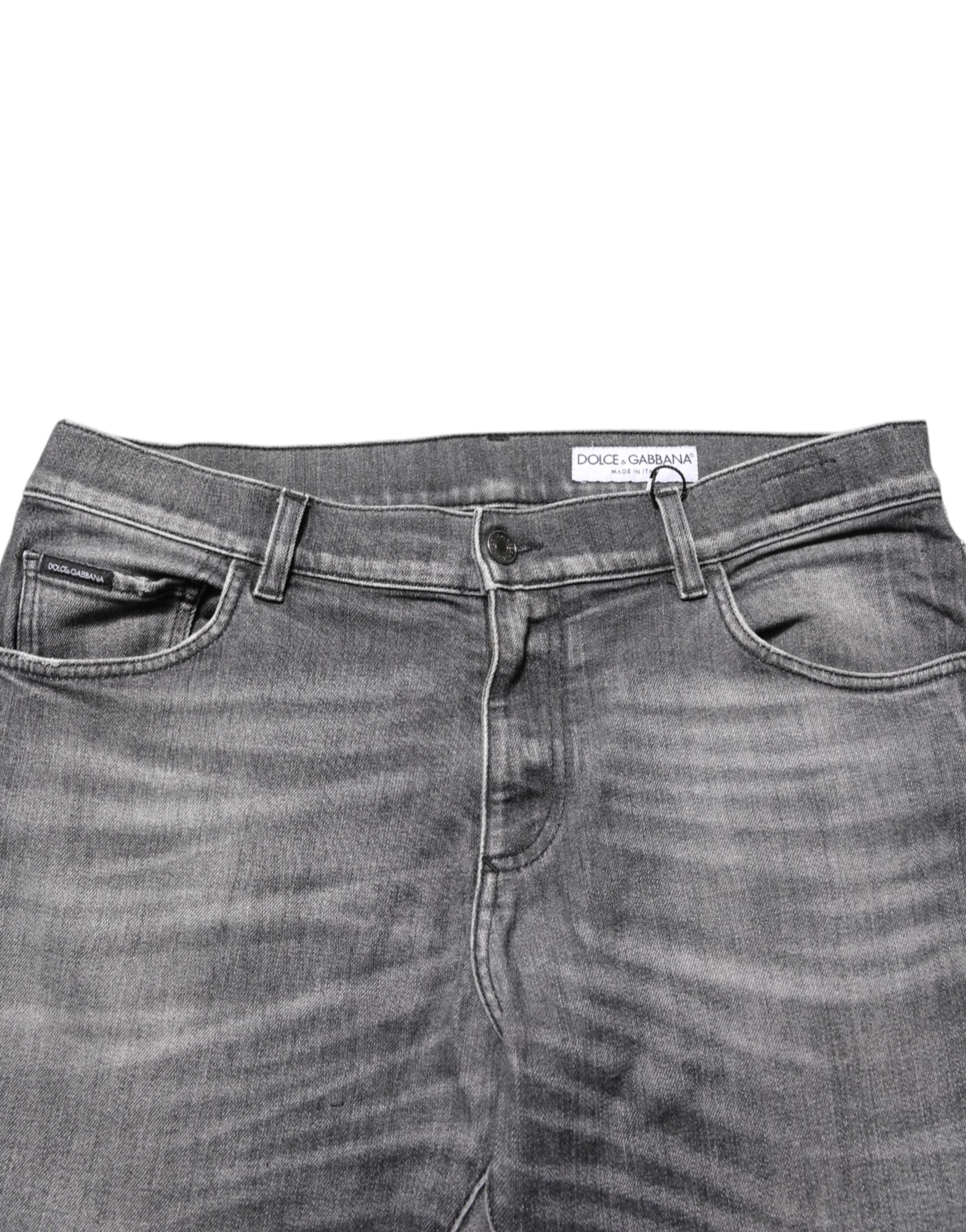 Grey Cotton Denim Slim Fit Distressed Pants Jeans
