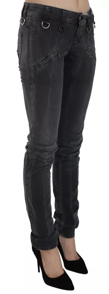 Grey Washed Low Waist Zipper Side Skinny Denim Jeans