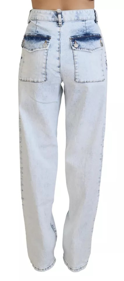 Light Blue Cotton High Waist Straight Denim Jeans
