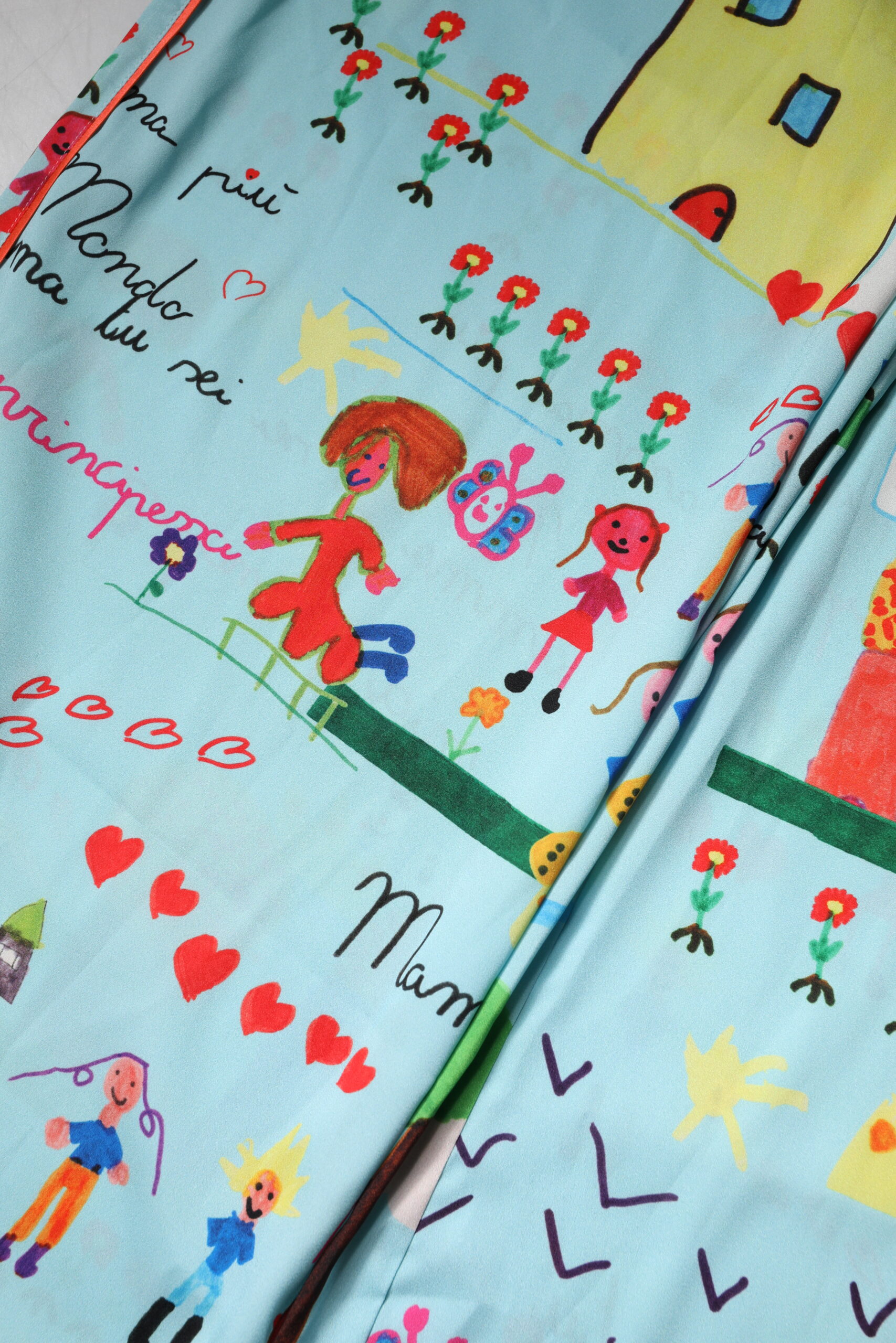 Light Blue Drawing Mid Waist Wide Leg Pants