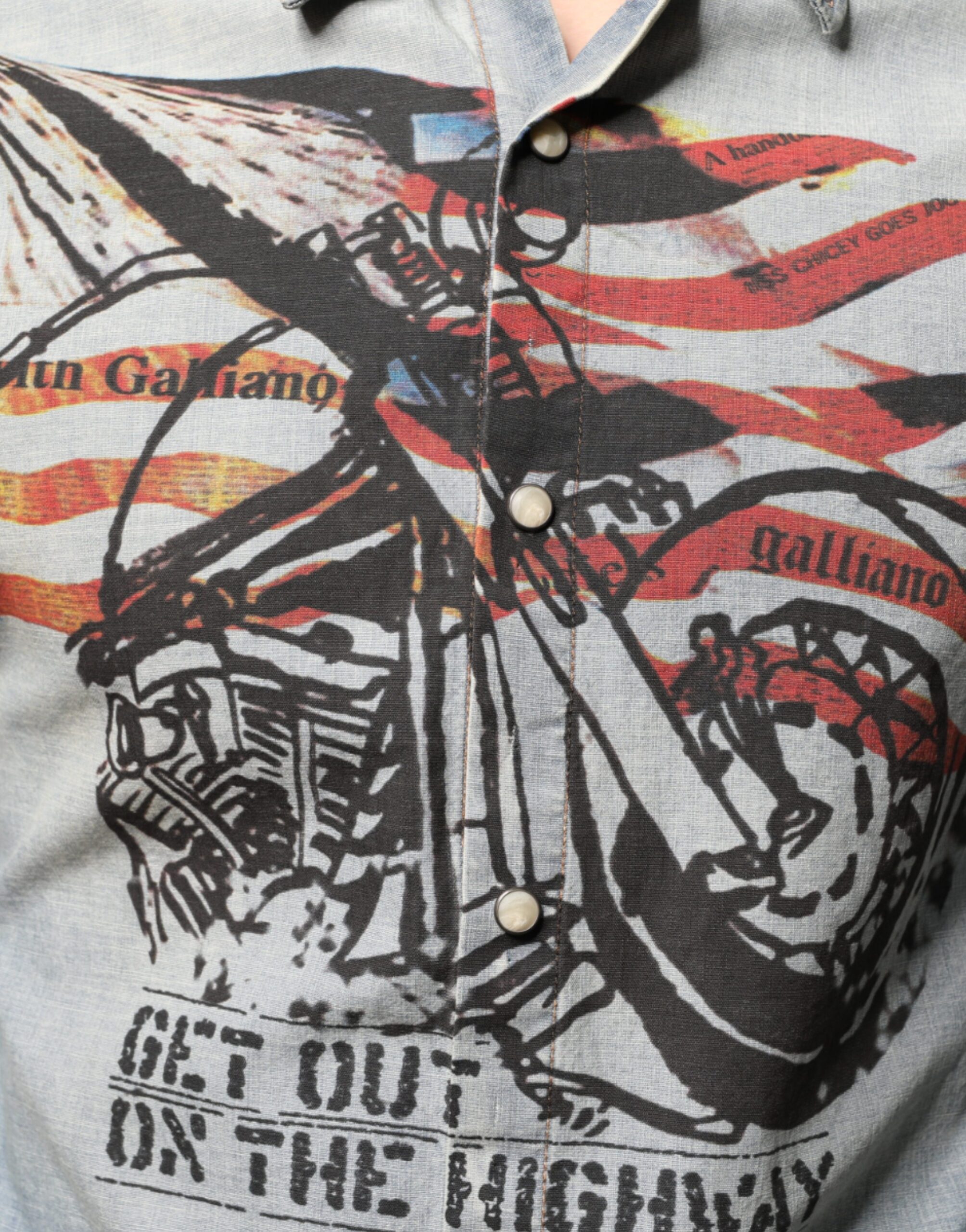 Light Blue Printed Cotton Denim Long Sleeves Shirt