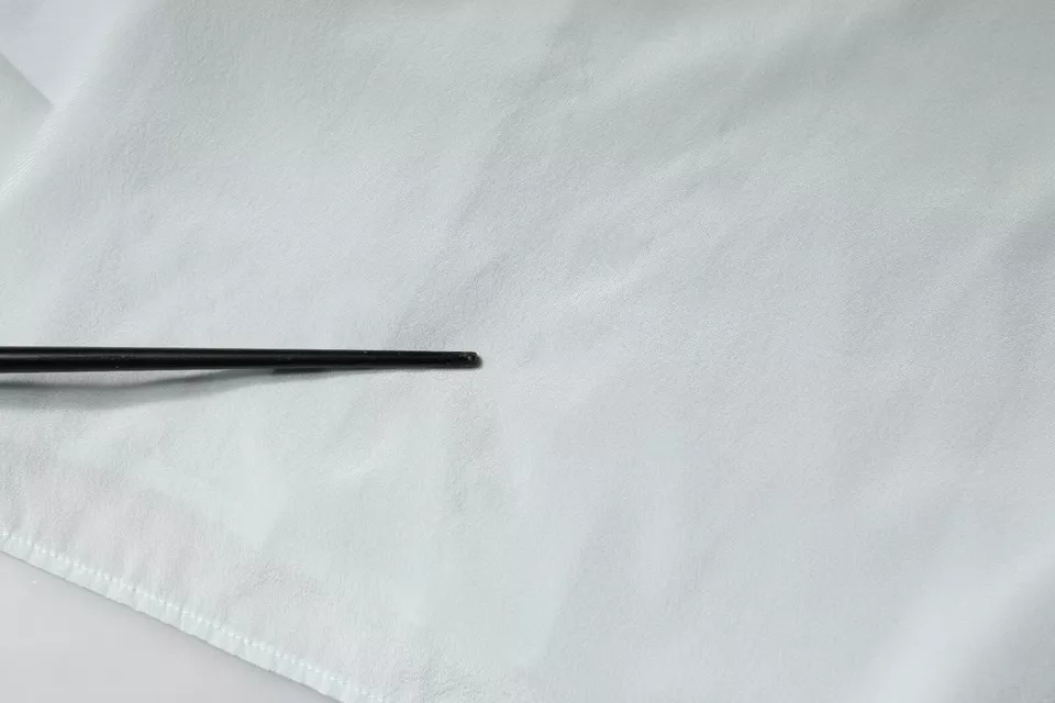Light Blue Silk Ascot Collared Long Sleeves Top