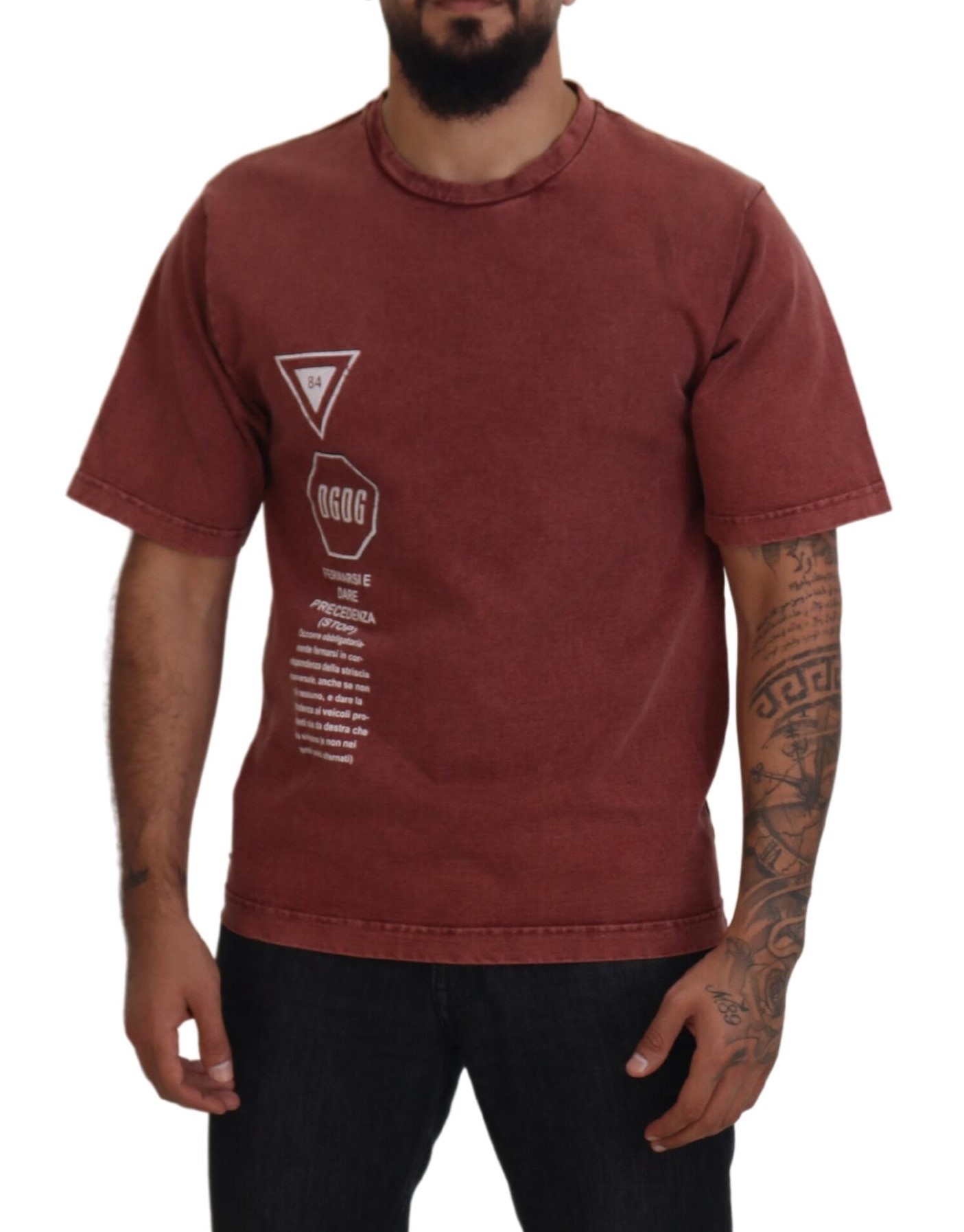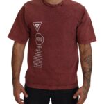 Maroon Print Round Neck Short Sleeves T-shirt