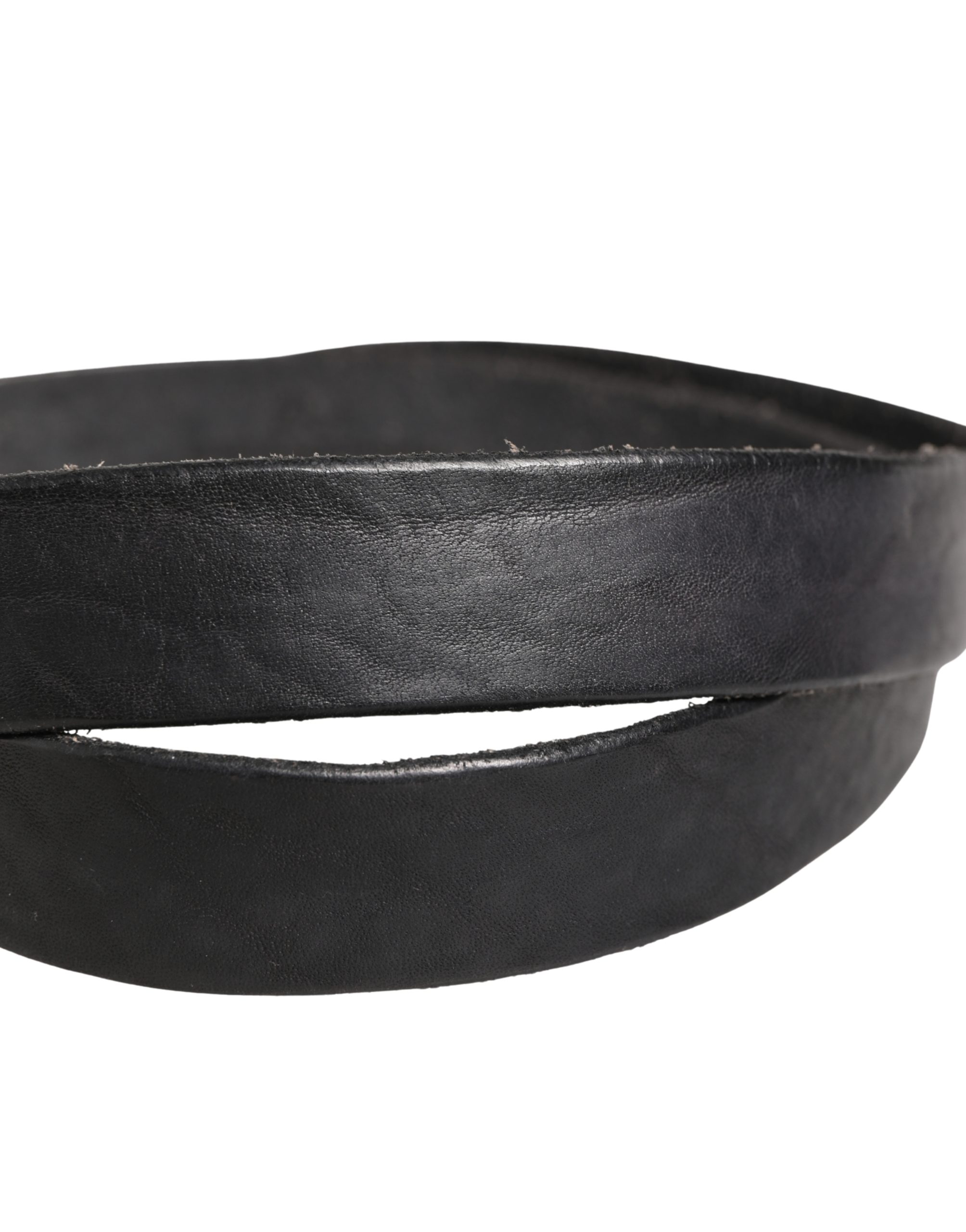 Men Black Leather Metal Buckle Belt