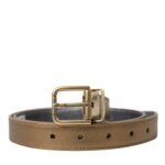 Metallic Gold Calf Leather Metal Buckle Belt