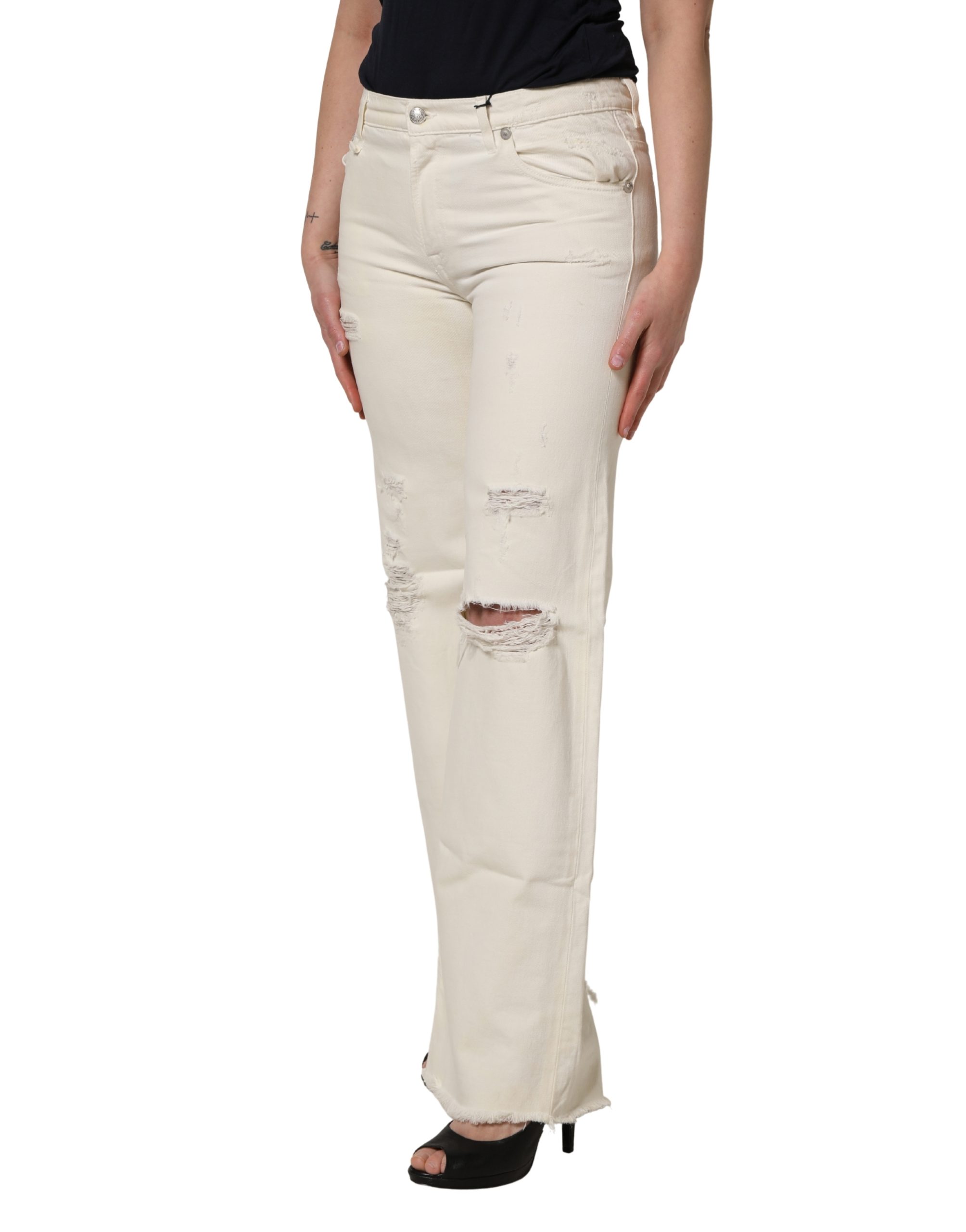 Mid Waisted Bootcut Tattered Denim Trouser Jeans