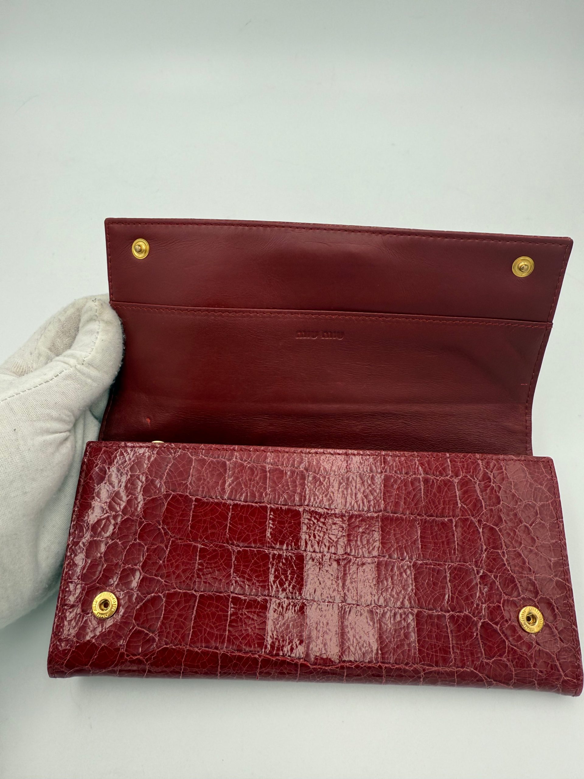 MIU MIU Rosso Crocodile Print Leather Wallet