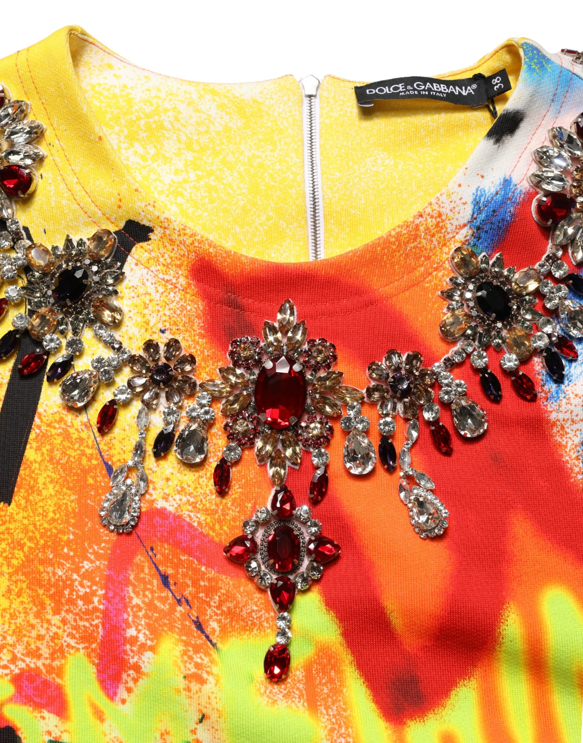 Multicolor Graffiti Crystals Crop Jersey Top