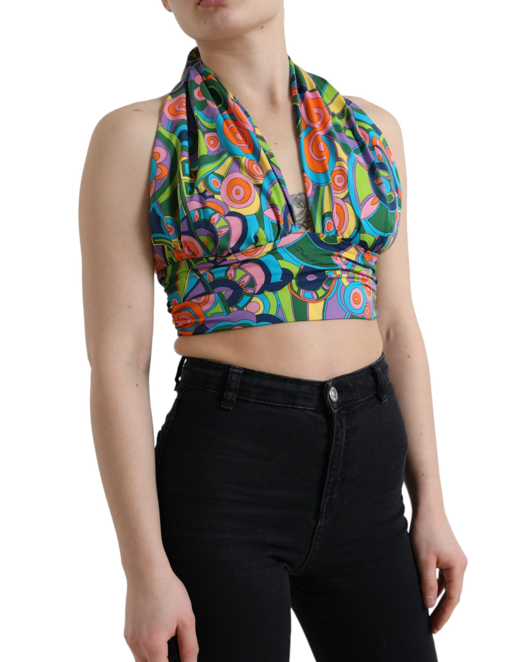 Multicolor Halter Sleeveless Cropped Tank Top