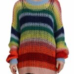 Multicolor Knitted Mohair Crewneck Pullover Sweater