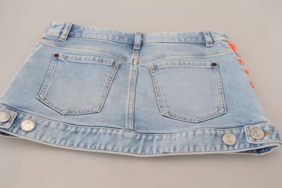 Multicolor Polyester Low Waist A-line Denim Skirt