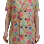 Multicolor Printed Collared Button Front Long Blouse Top