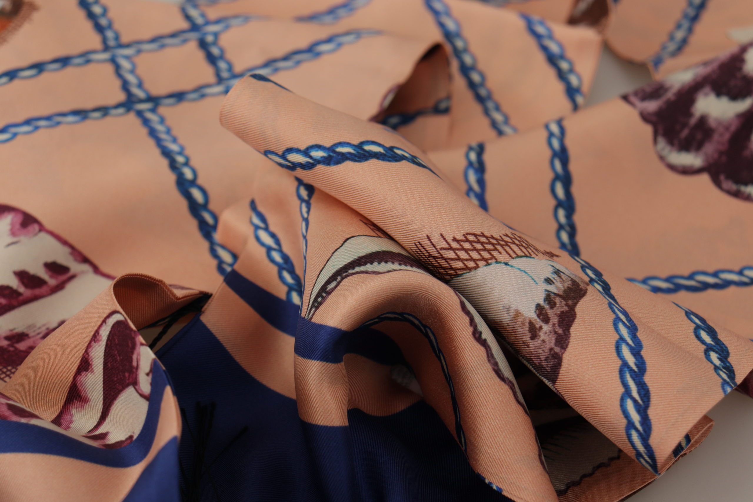 Multicolor Seashell Patterned DG Logo Shawl Fringe Silk Scarf