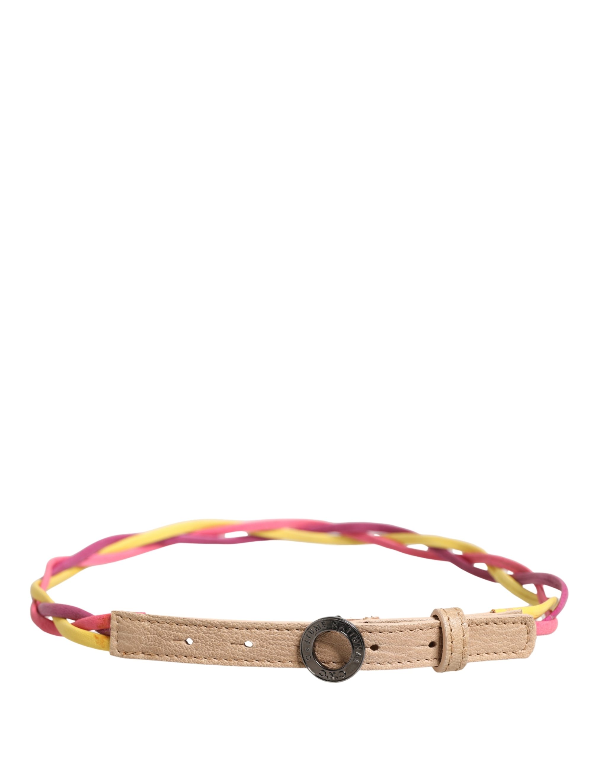 Multicolor Twisted Leather Circle Buckle Belt