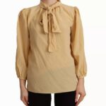 Mustard Ascot Collar Shirt Silk Blouse Top