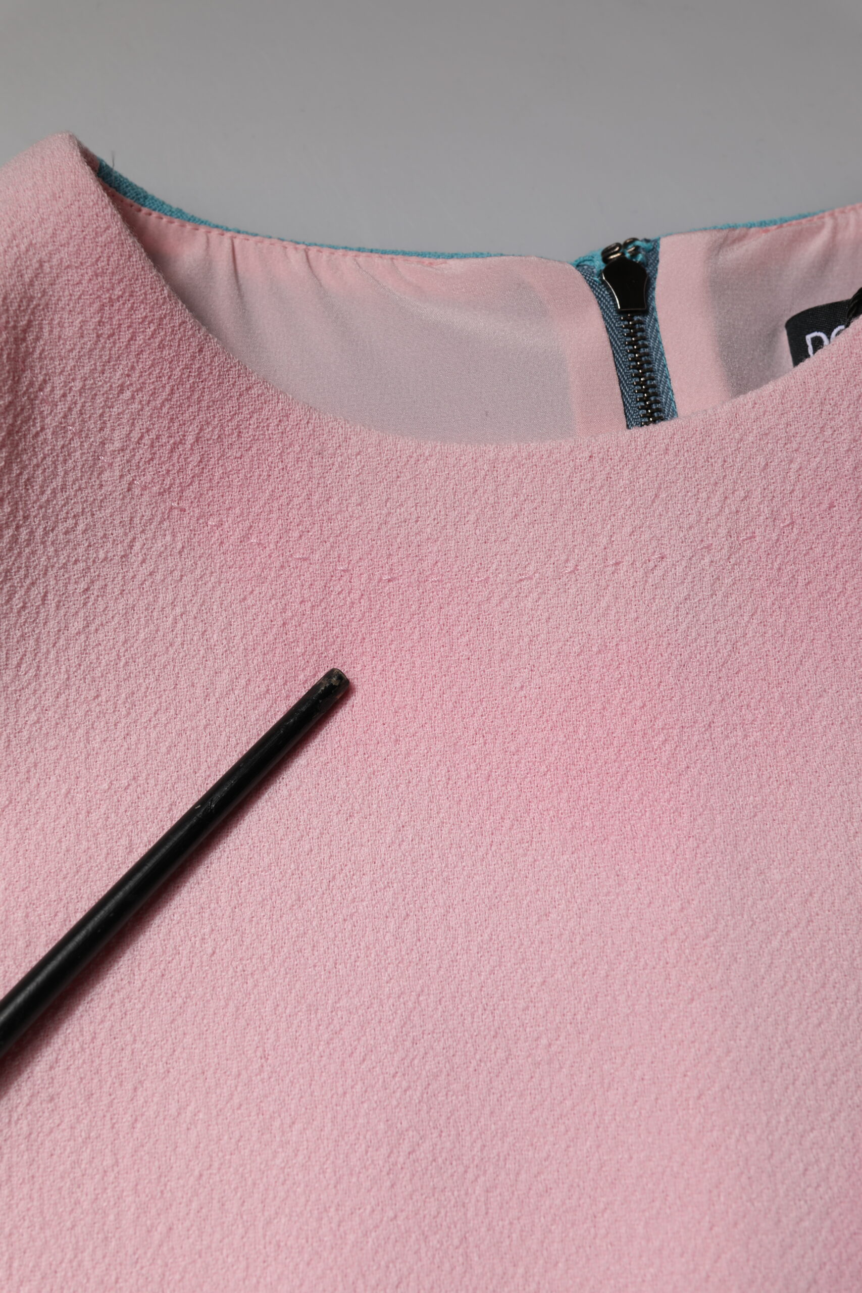 Pink Blue Wool Sleeveless Shift Mini Dress