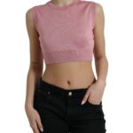 Pink Crew Neck Cropped Sleeveless Tank Top