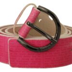 Pink Leather Letter Logo Round Buckle Waist Belt