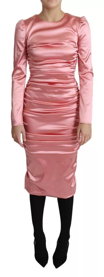 Pink Long Sleeves Bodycon Sheath Midi Dress