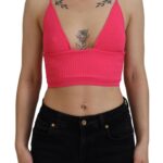 Pink Ribbed Knit Bra Cropped Spaghetti Strap Top