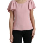 Pink Short Sleeves Round Neck Blouse Top