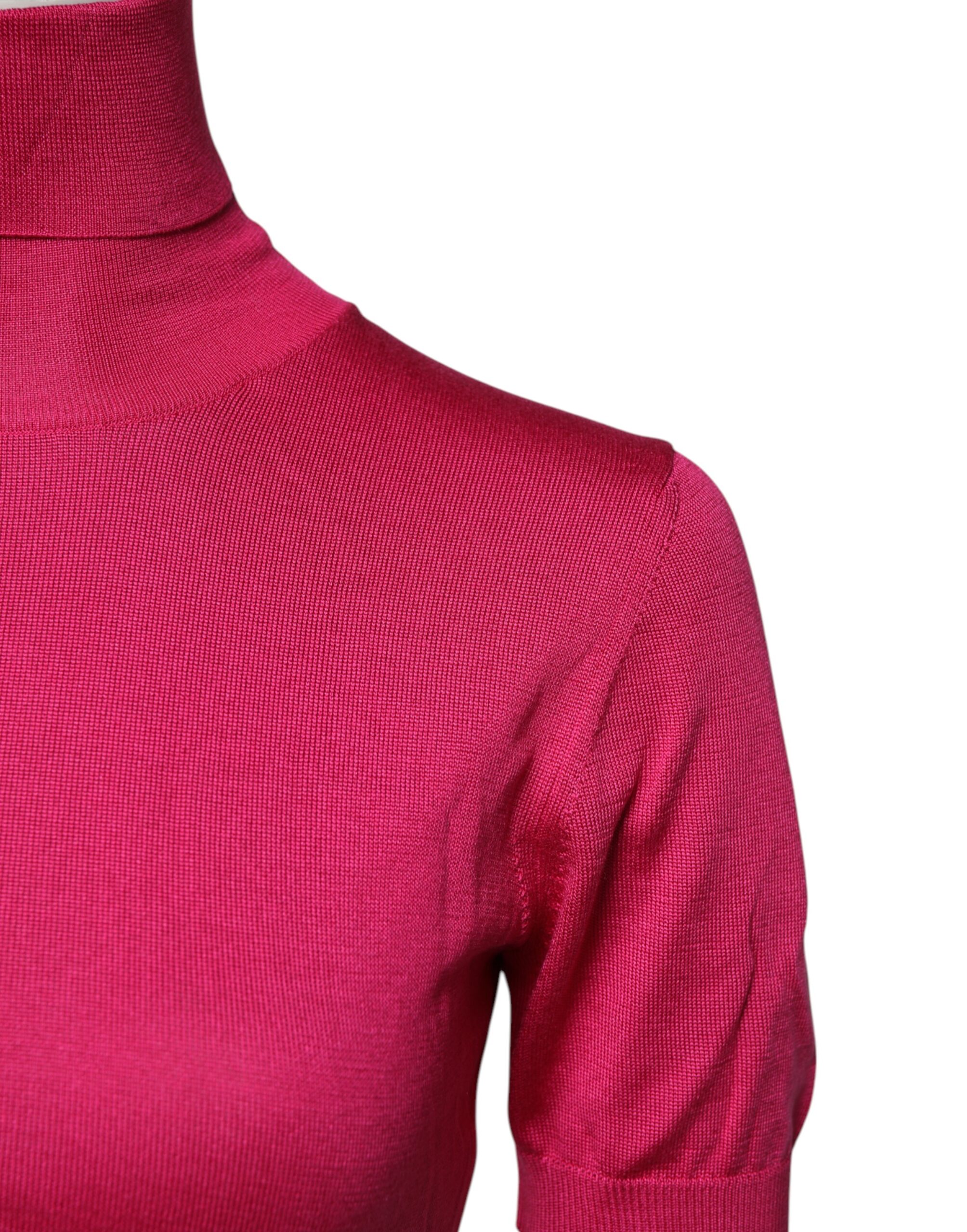 Pink Silk Knitted Turtleneck Cropped Top
