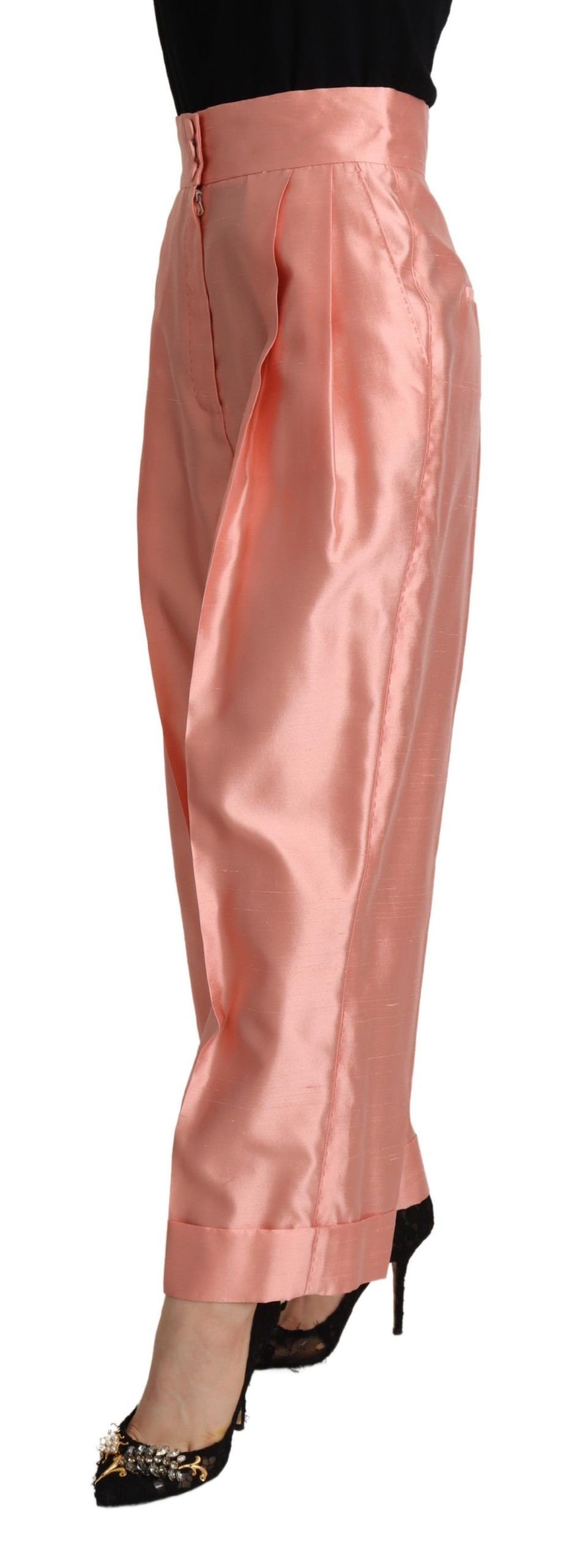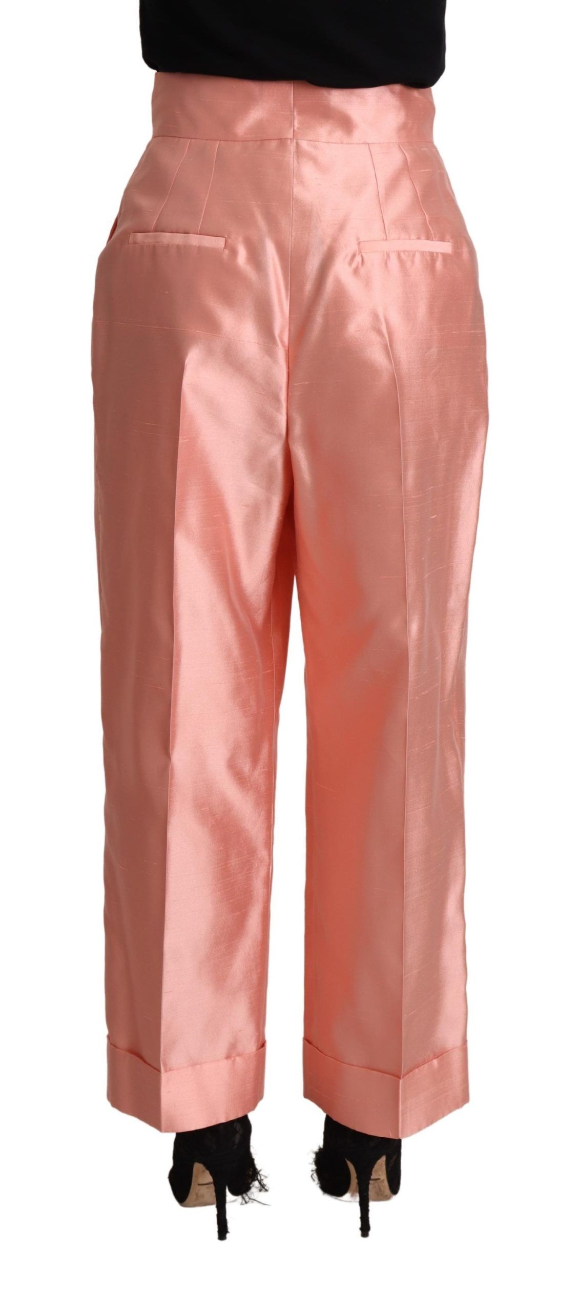Pink Silk Satin High Waist Straight Pants