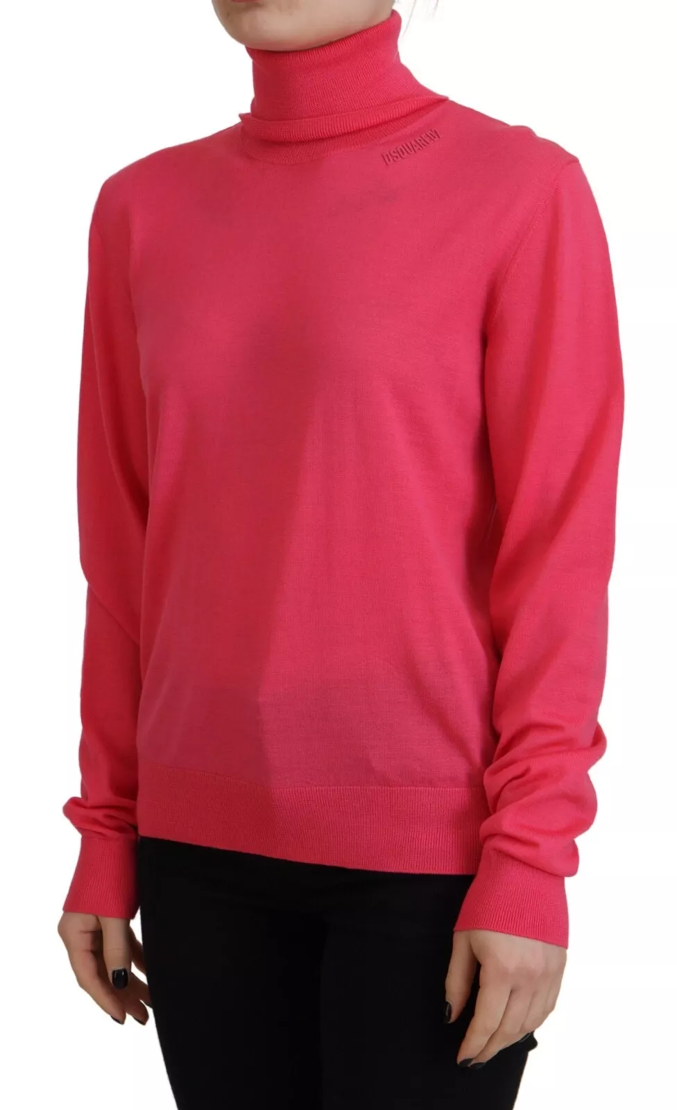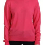 Pink Solid Long Sleeve Turtle Neck Casual Sweater