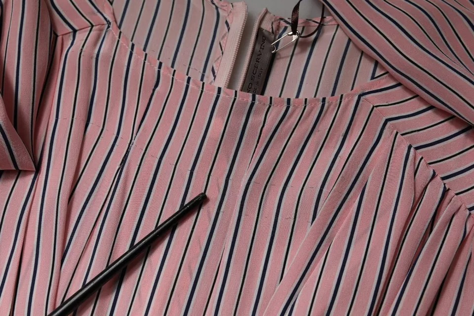 Pink Stripes Silk Long Sleeves Midi Dress