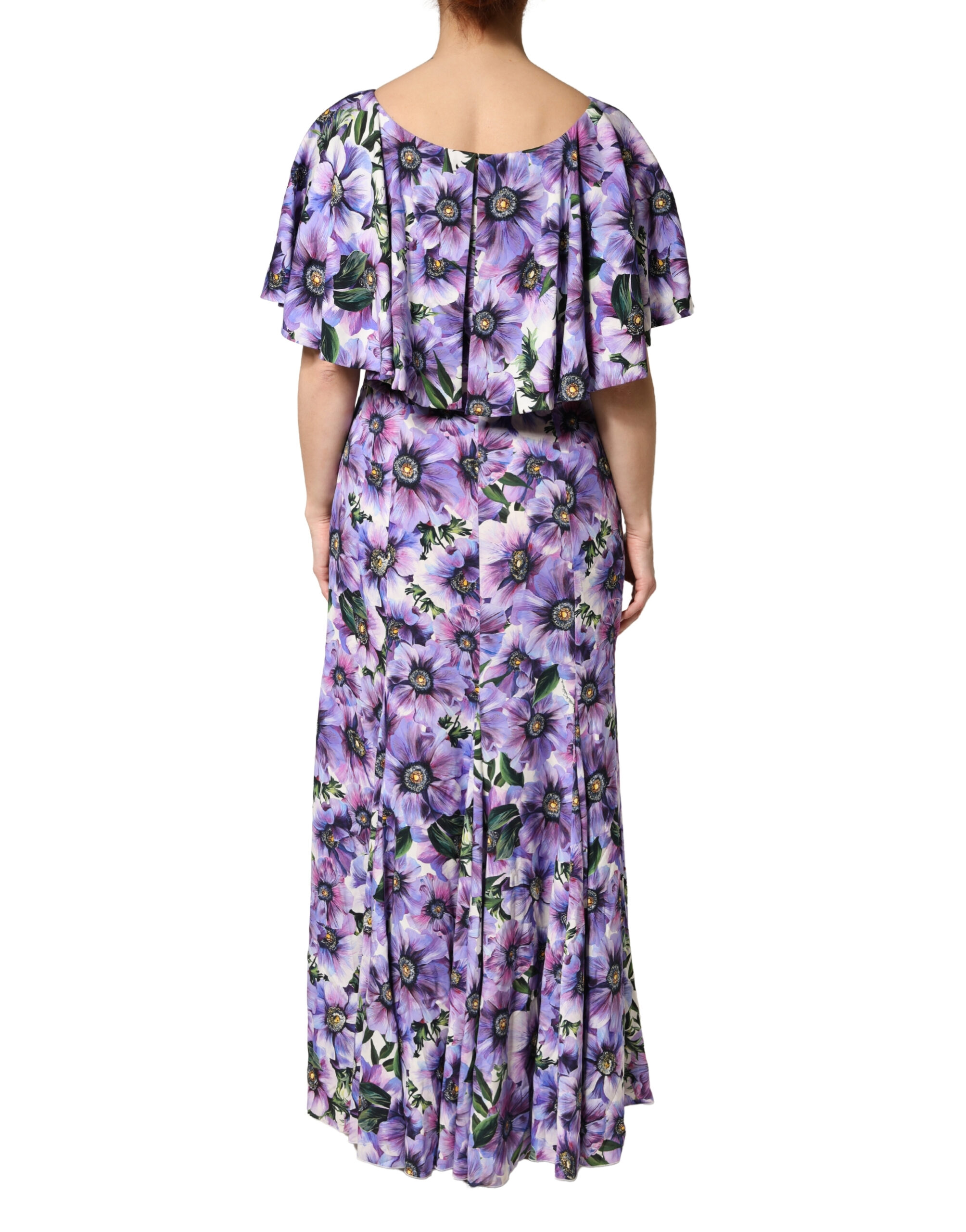Purple Floral Silk Stretch Elegant Gown Dress