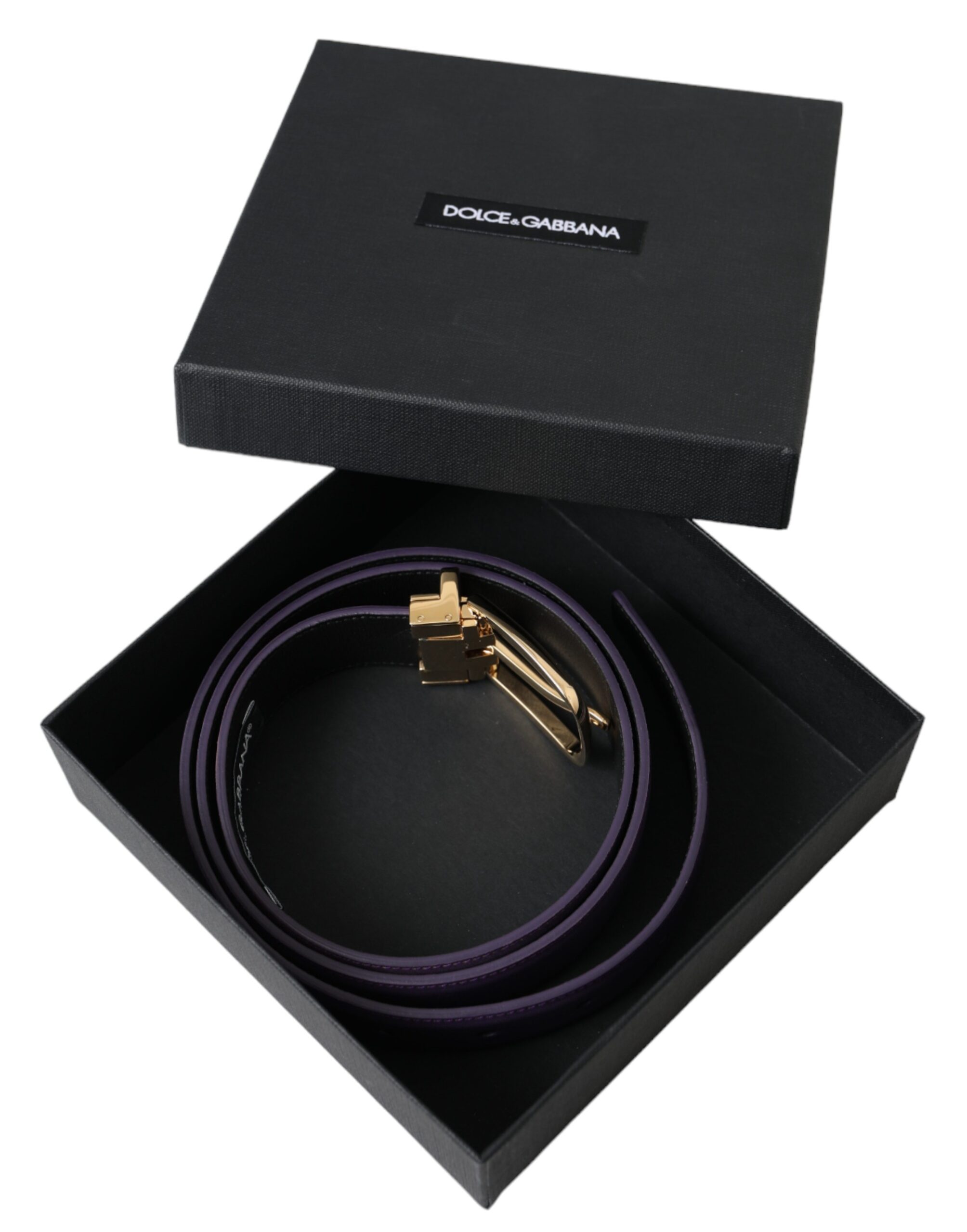 Purple Leather Gold Metal Buckle Belt Men