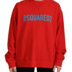 Red Cotton Printed Crew Neck Long Sleeve Sweater