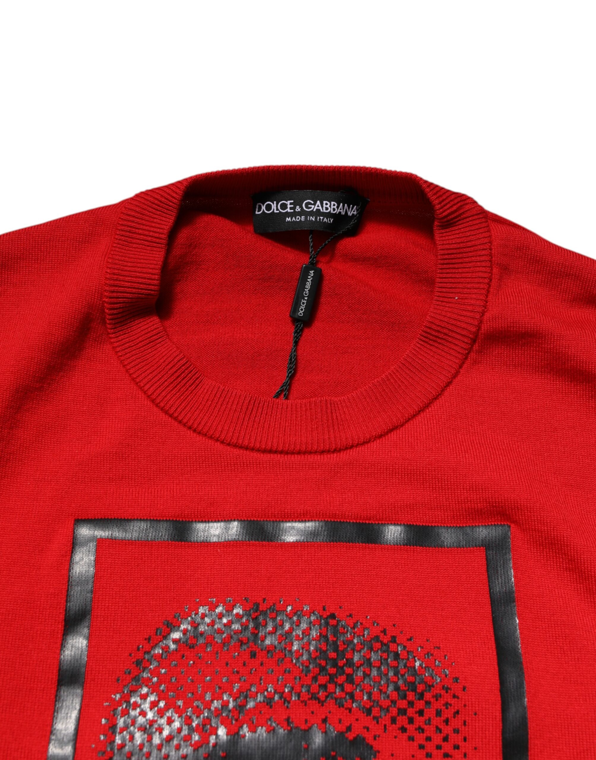 Red Eye Print Crew Neck Men Pullover Sweater