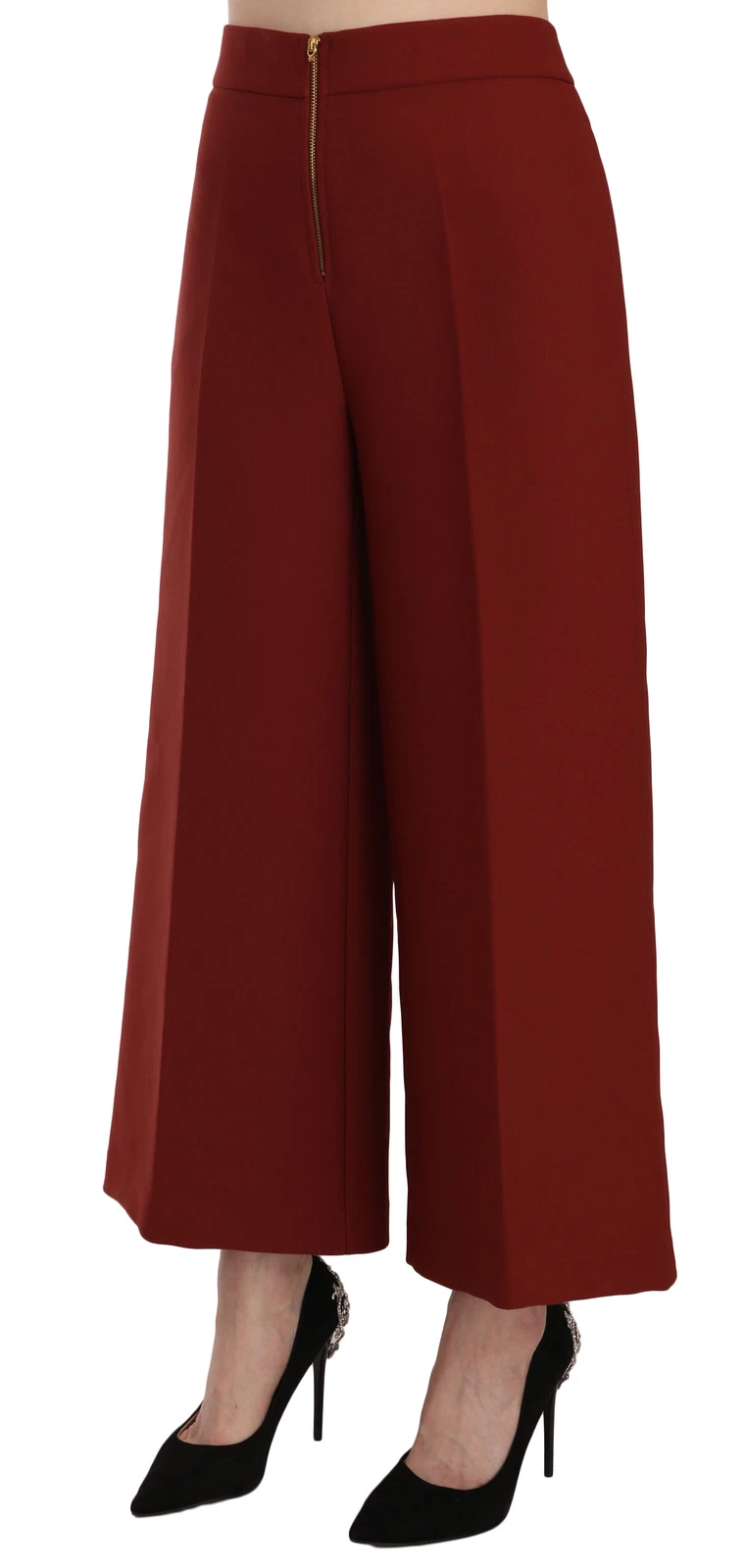 Red High Waist Cropped Flared Dress Formal Trouser Pants